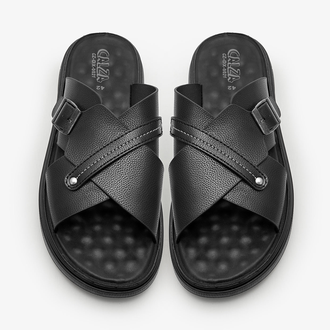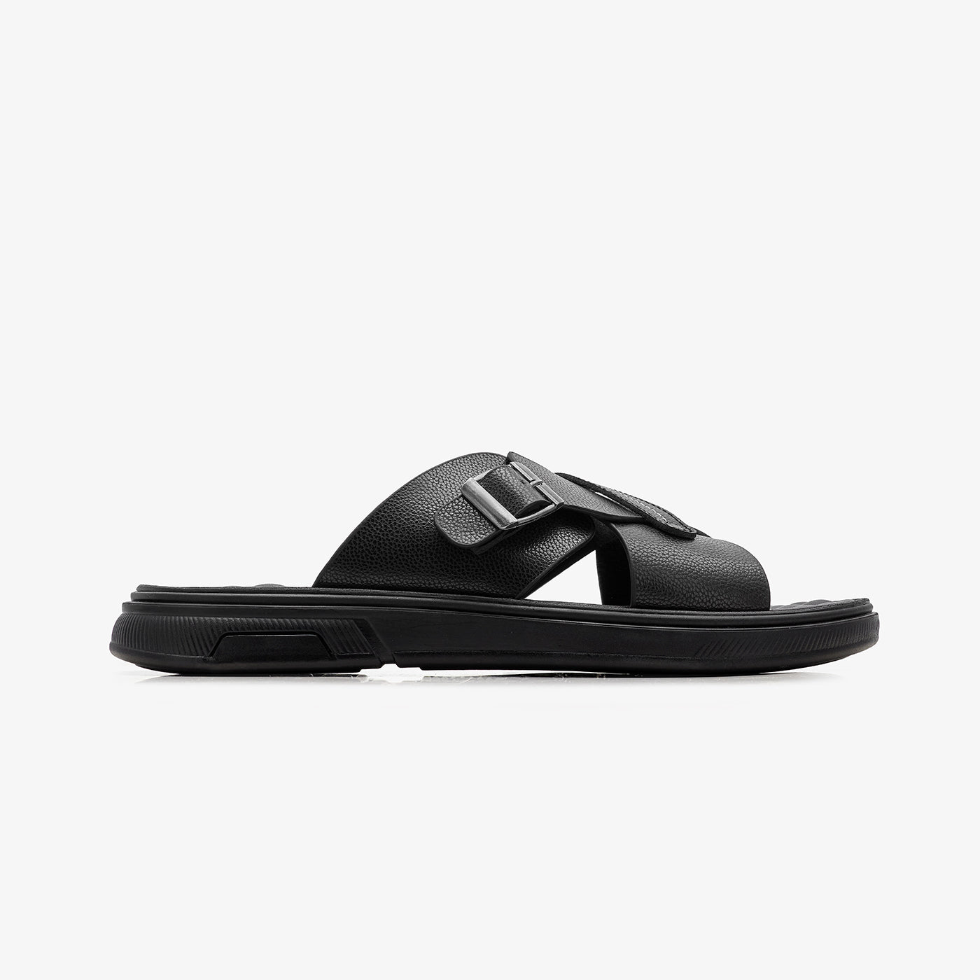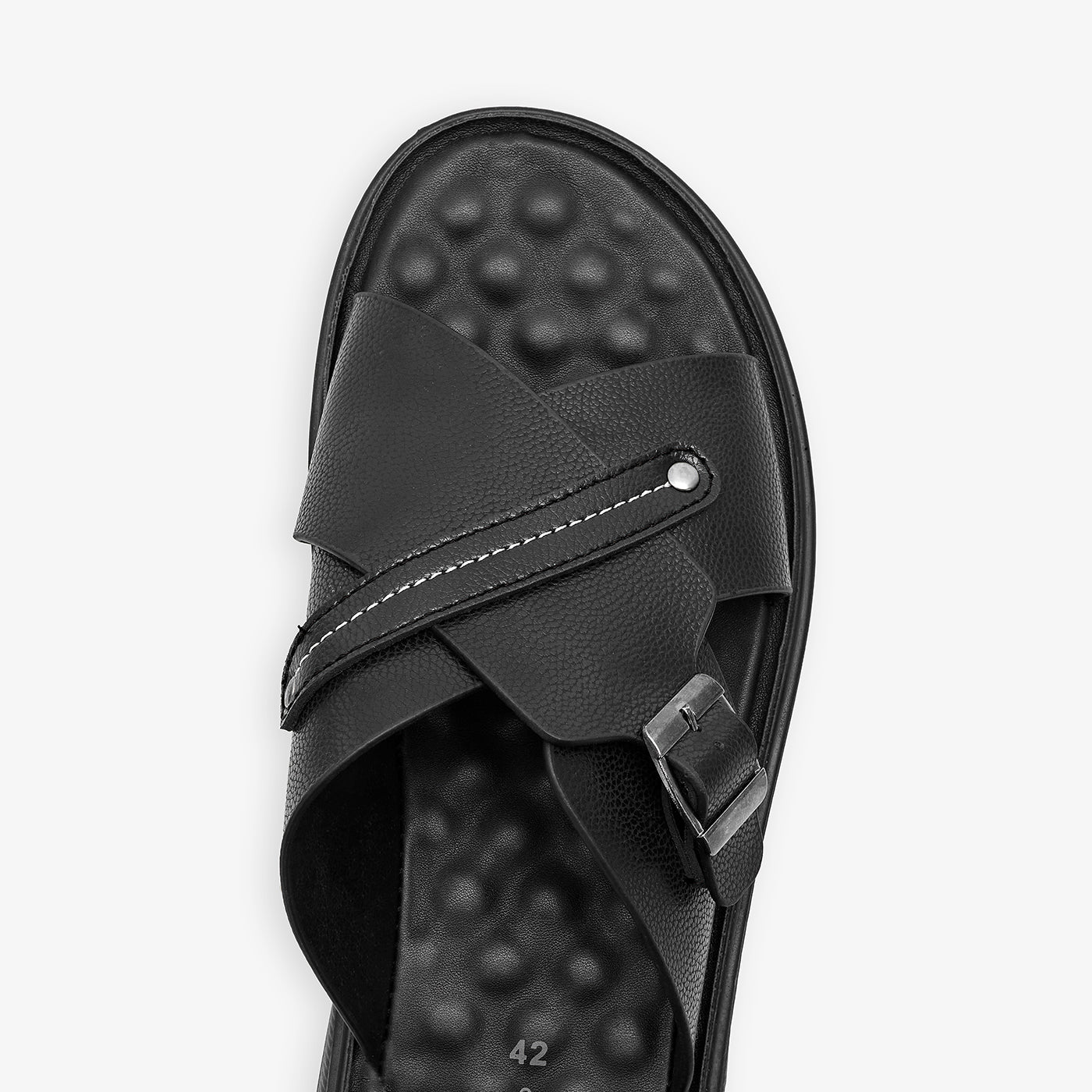 Enjoy a refined and modern look with this sleek men’s chappal, elevated with a polished metal buckle detail. Crafted from high-quality man-made leather with a smooth finish, paired with an extra-padded insole for all-day comfort. Completed with a PU outsole that provides reliable grip and slip resistance for everyday wear.